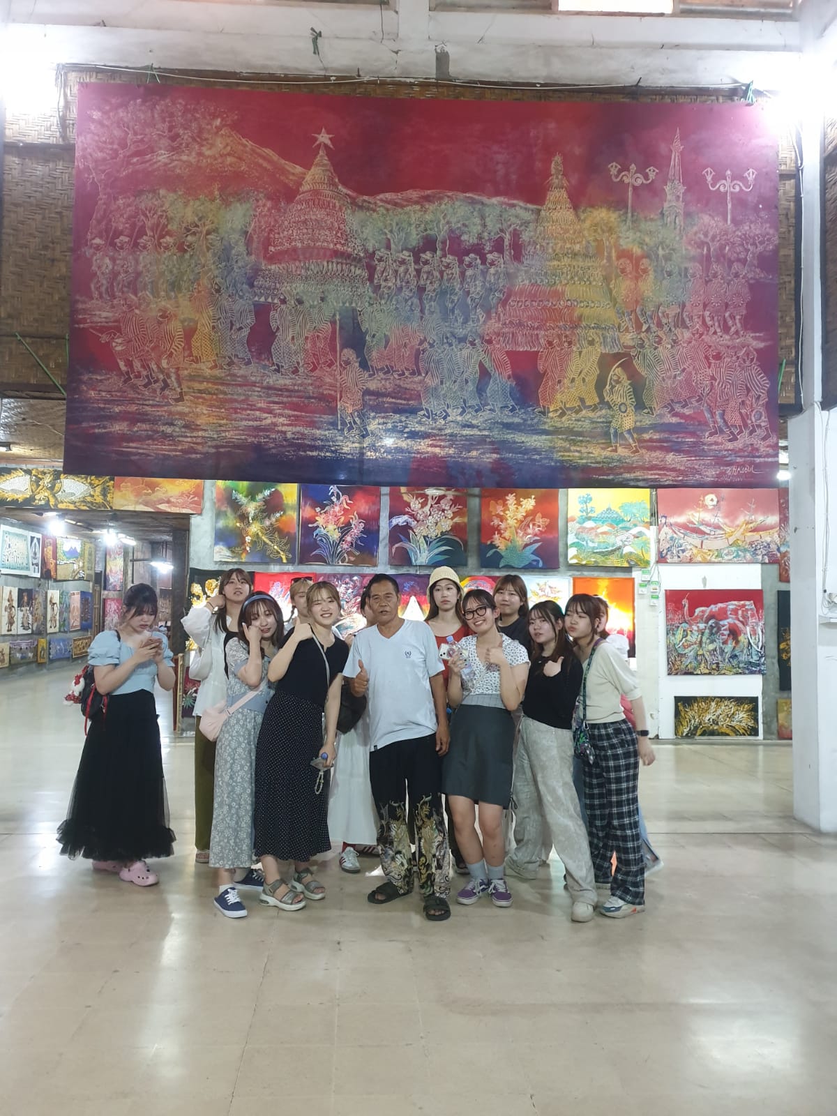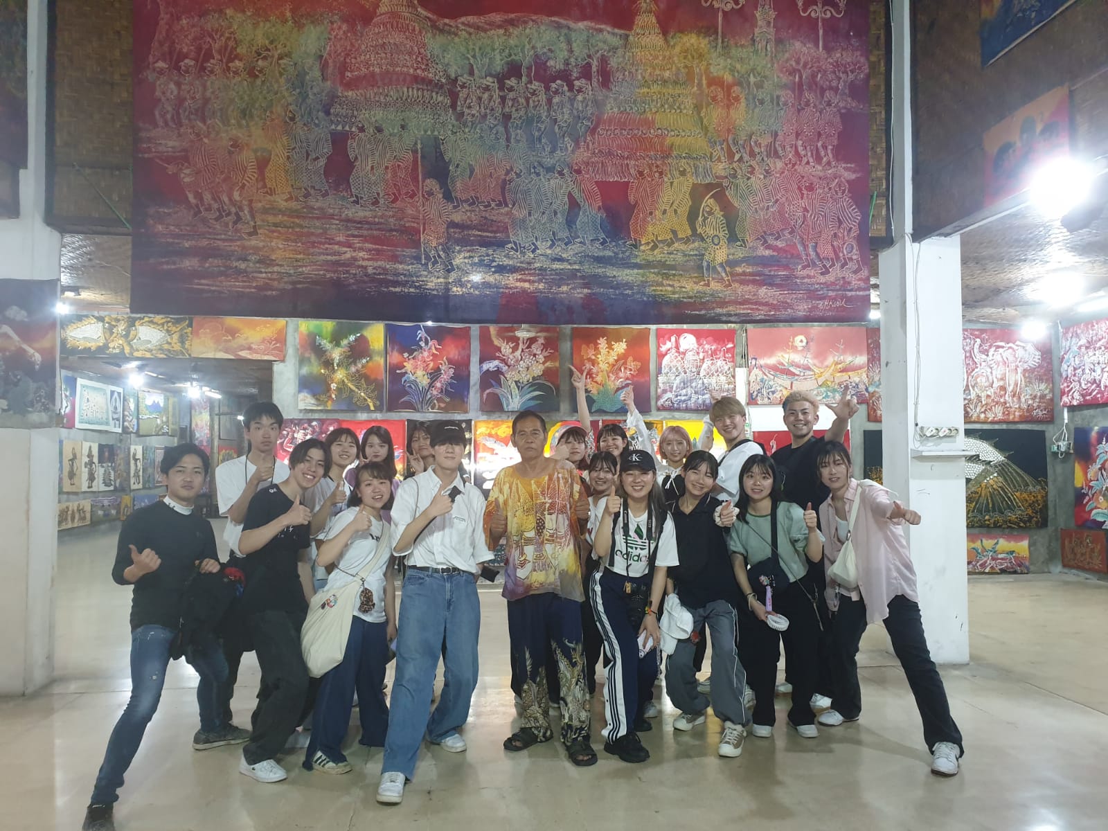 Japanese students studying hand-drawn batik at the Kabul Art Gallery
