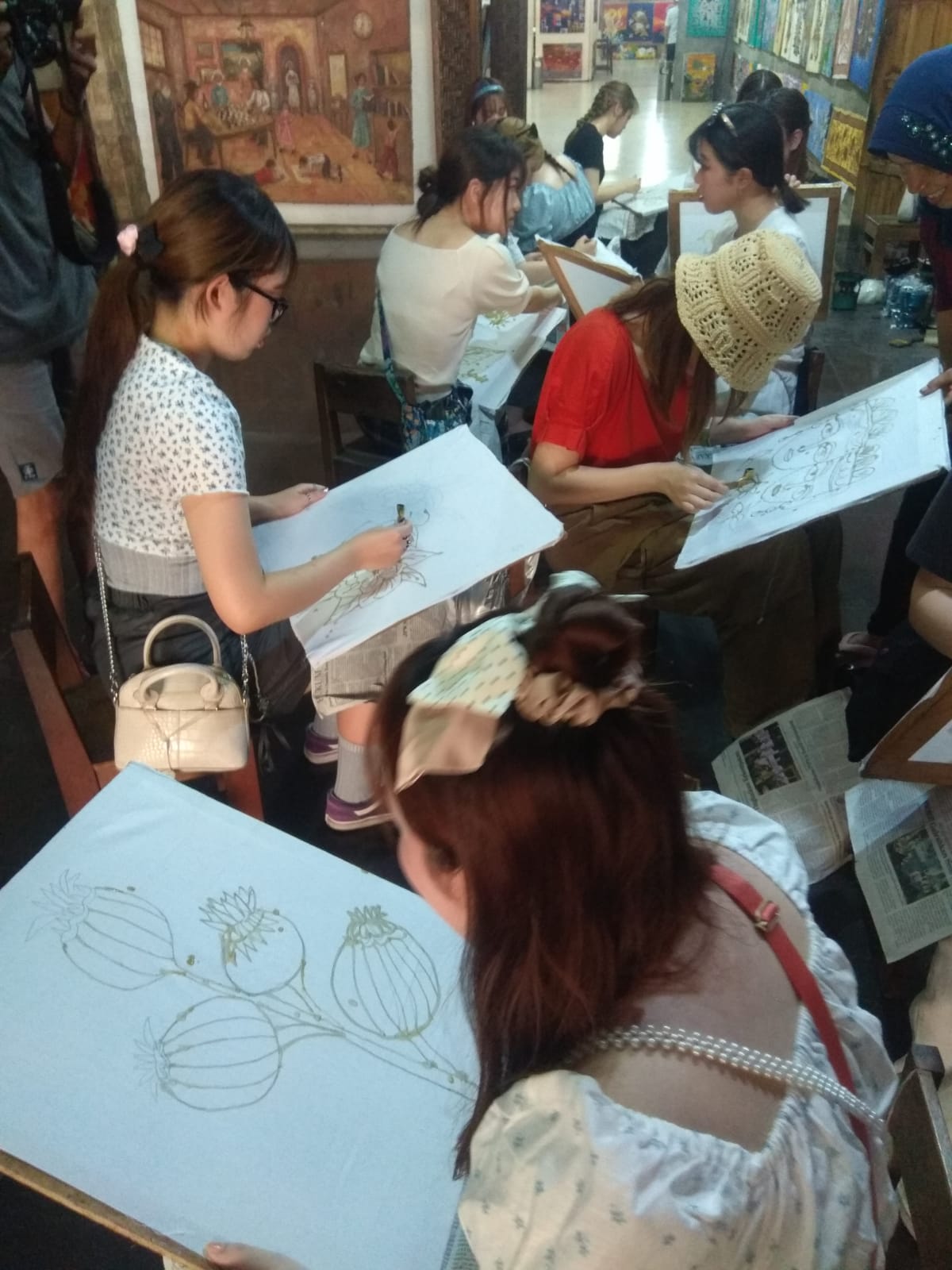 Batik training at the Kabul Art Gallery held by the sub-district government and attended by the local community.