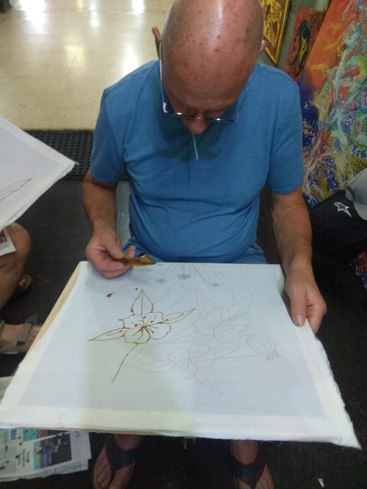 12 tourists from France came to the Kabul Art Gallery to learn batik making with the maestro Mr. Kabul
